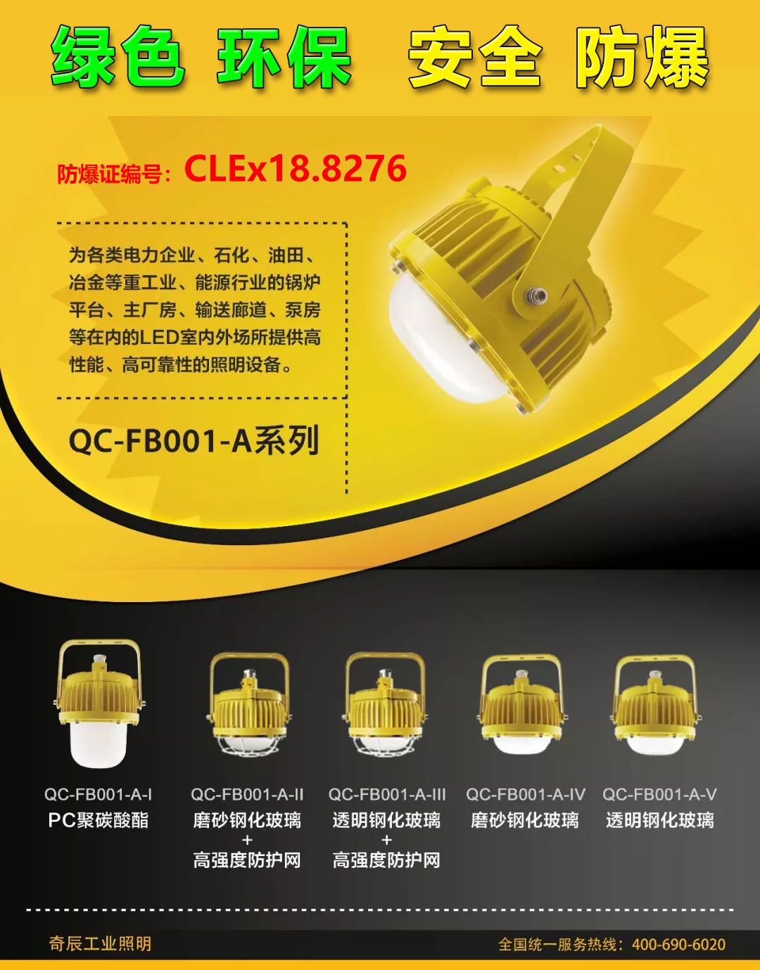 437bwin必赢防爆LED照明灯QC-FB001-A系列为各类电力企业、石化、油田、冶金等重工业、能源行业的锅炉平台、主厂房、输送廊道、泵房等在内的LED室内外场所提供高性能、高可靠性的照明设备,是一套实用型、性价比高的LED防爆安全灯产品。